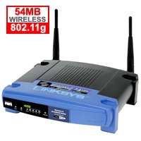 | Picture of a wireless 54 Mbps router. This is one of the devices (along with a cable/dsl modem) that enables you to have wireless access to the internet or another computer/network. |
